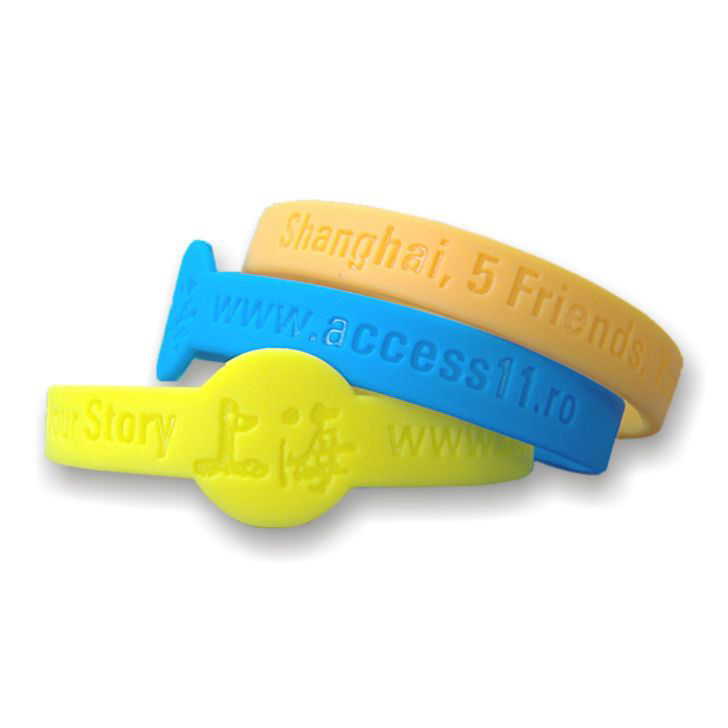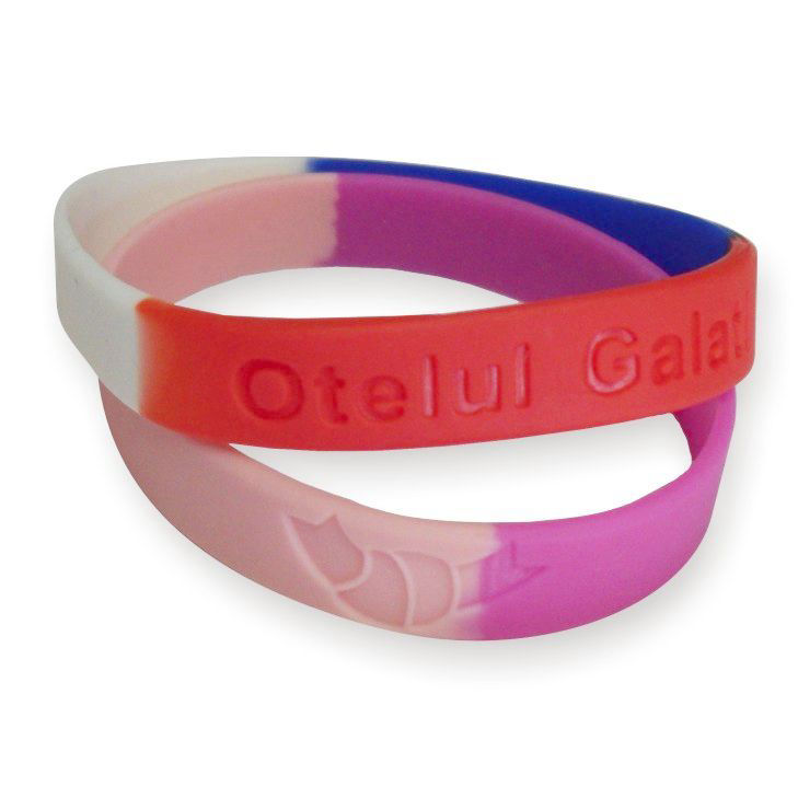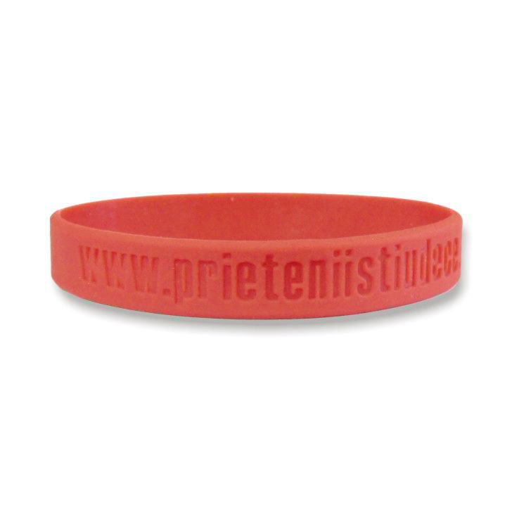 Acest tip de bratari se fabrica utilizandu-se o matrita, cu care se stanteaza mesajul sau logo-ul in corpul bratarii, direct la productie. Culoarea bratarii siliconice se poate alege, la cerere, pe baza codului PMS.